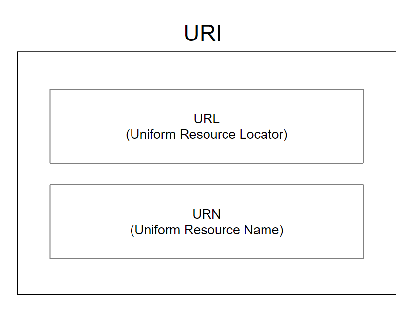 우선 결과적으로는 URI가 URL의 상위개념입니다. 각각의 약어가 어떤 단어의 약자인지를 알면 조금 더 명확해지는데, 앞의 UR은 모두 Uniform Resource로 똑같고 맨 뒷자만 보면 URI의 i는 identifier, 즉 그 자원의 전반적인 식별 규약을 말하고, URL의 L은 Locator의 약자로 식별 규약 중 그 자원의 위치를 중심으로 표현한 것이라 볼 수 있습니다. 잘 쓰이지는 않지만 URN이라는 개념도 있는데, URN은 위치에 상관없이 해당 자원의 이름을 식별하는 규약입니다.