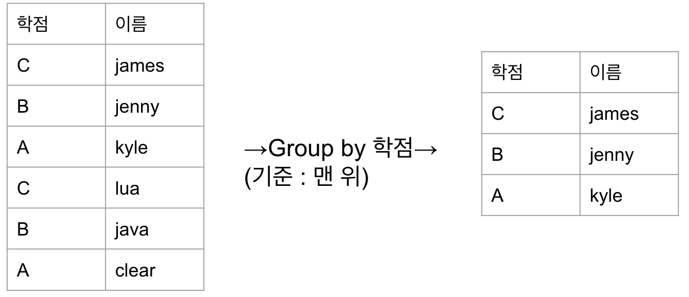 그래서 예를 들어 group by 를 할 때 맨 위에 위치한 데이터가 아니라 가장 최신의 row를 남기고 싶다면, group by 이전에 데이터의 정렬이 필요합니다.